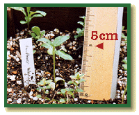 イタリアンホワイトは、たくさん発芽したので3本ずつ2鉢に分けよう。
